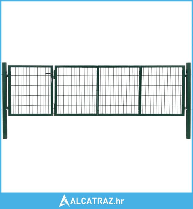 https://www.alcatraz.hr/trgovina/vrtna-dvorisna-vrata-za-ogradu-sa-stupovima-350x100-cm-celik-zelena/