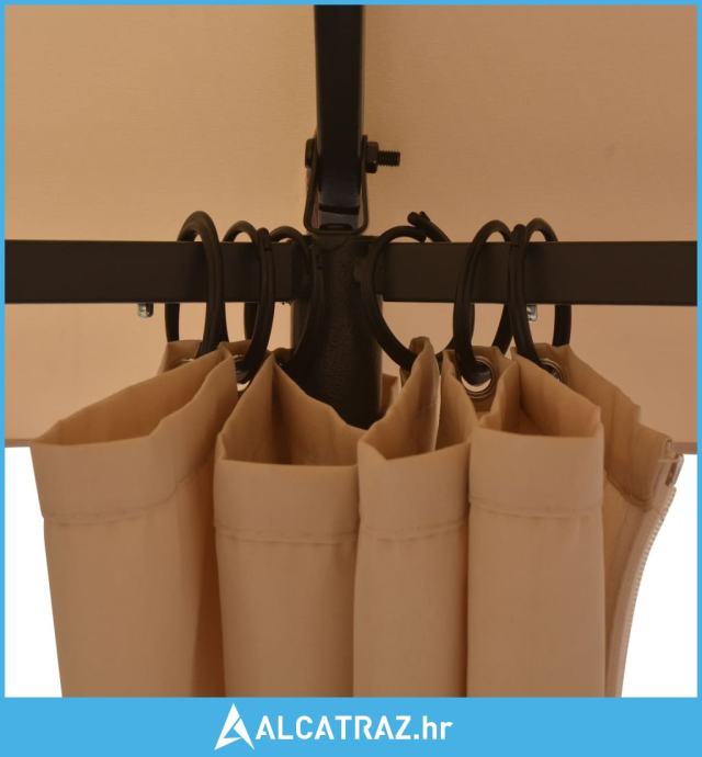 Ova sjenica sa zavjesama ima klasičan i elegantan dizajn. Stvorit će savršenu zaštitu od sunca za događaje na otvorenom, kao što su večere, roštilji, obiteljska okupljanja i slično.
