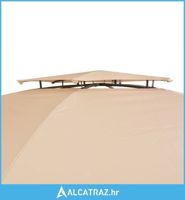 Vodootporni krov i zavjese napravljeni su od poliesterske tkanine s premazom od poliamida (PA). Okvir je čvrsto izrađen od snažnog čelika obloženog prahom i stoga je otporan na hrđu i vrlo stabilan. Nadstrešnica ima elegantan dizajn s dvostrukim prozračivanjem koji omogućuje bolju ventilaciju. Poliesterske zavjese lako se čiste i mogu se zatvoriti kako bi pružile veću privatnost ili ih možete maknuti sa strane pomoću uključenih vrpca za vezanje.