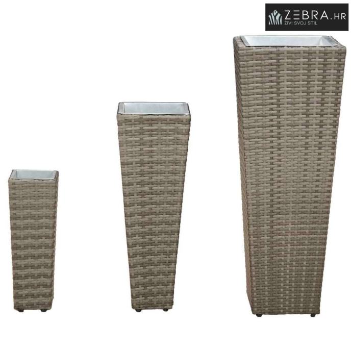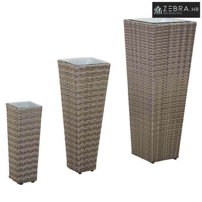 Ovaj set vanjskih posuda dodaje šarm svaki vrtu ili terasi. Napravljen je za poboljšanje izgleda vašeg doma, kombinirajući modernu estetiku s funkcionalnošću. Njihov trapezoidni oblik i pleteni uzorak pružaju chic minimalistički izgled koji se uklapa u razne vanjske stilove. Donose malo zelenila u vaš prostor, idealni su za sve koji žele podići vanjsko okruženje s daškom botaničke elegancije.
