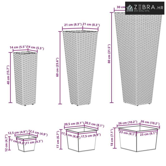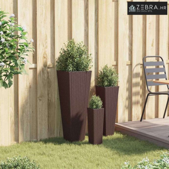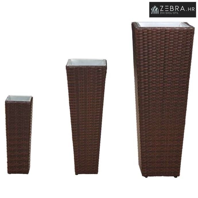 Ovaj set vanjskih posuda dodaje šarm svaki vrtu ili terasi. Napravljen je za poboljšanje izgleda vašeg doma, kombinirajući modernu estetiku s funkcionalnošću. Njihov trapezoidni oblik i pleteni uzorak pružaju chic minimalistički izgled koji se uklapa u razne vanjske stilove. Donose malo zelenila u vaš prostor, idealni su za sve koji žele podići vanjsko okruženje s daškom botaničke elegancije.