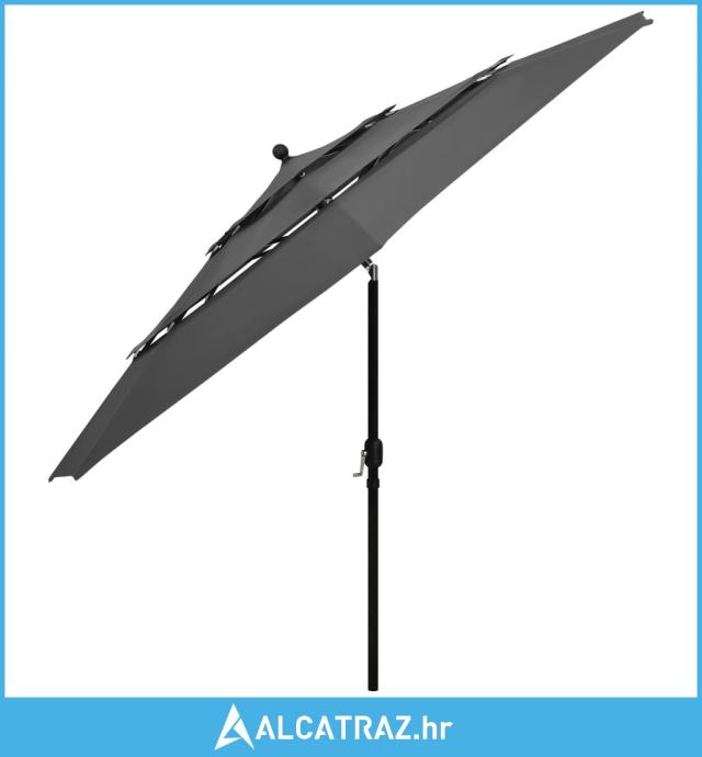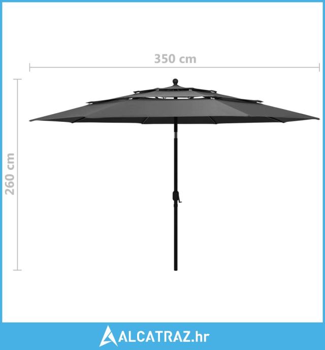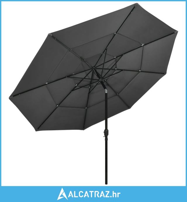 Vrtni suncobran s 3 razine i aluminijskim stupom 3,5 m antracit - NOVO