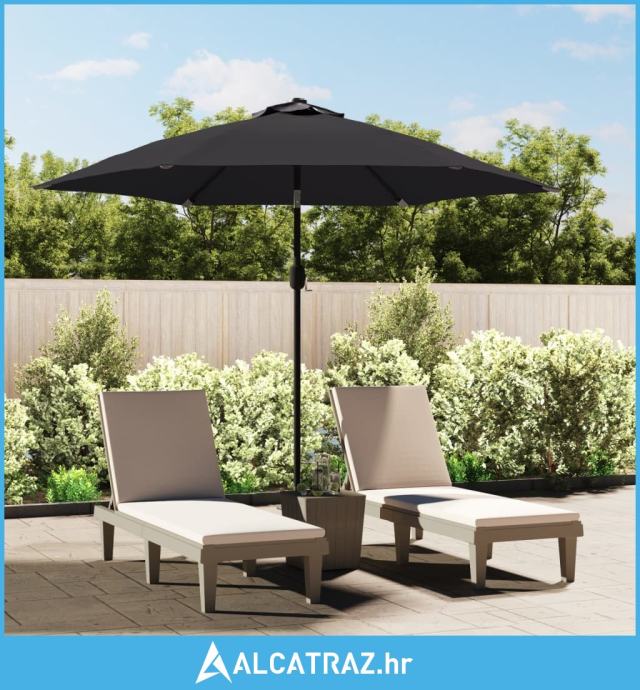 Vrtni suncobran s LED svjetlima i čeličnom šipkom 300 cm crni - NOVO