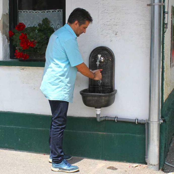 Zidni vrtni umivaonik Sunce primjeren je za postavljenje u vrtu ili u vinske klijeti.