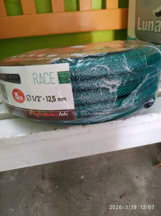 Trosklojno vrtno crijevo od pletenog PVC-a, 15m, 1/2", novo. Prodajem jer je krivo kupljeno.