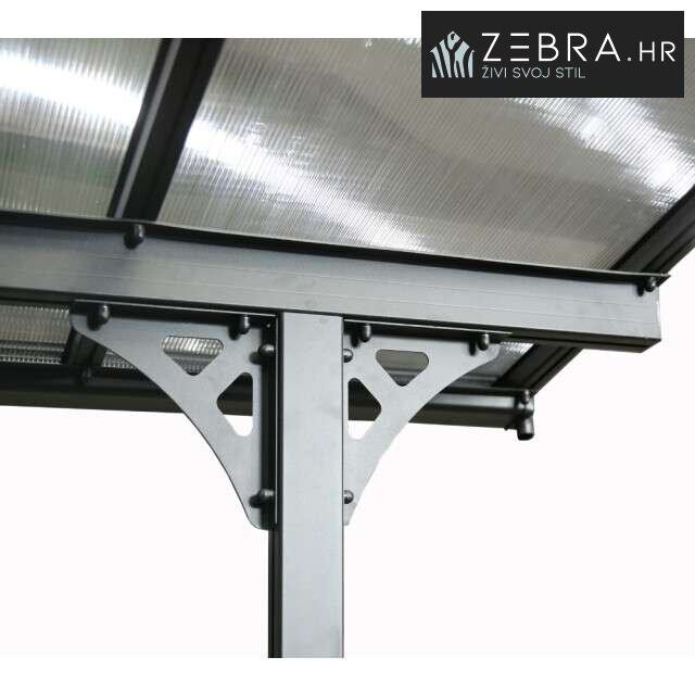 Ova nadstrešnica omogućuje stvaranje dodatnog vanjskog prostora koji je prozračan i zaštićen od kiše, sunca i drugih vremenskih nepogoda. Osim kao zaštita za terasu, može služiti i kao sklonište za vrtni alat ili nadstrešnica za automobil.