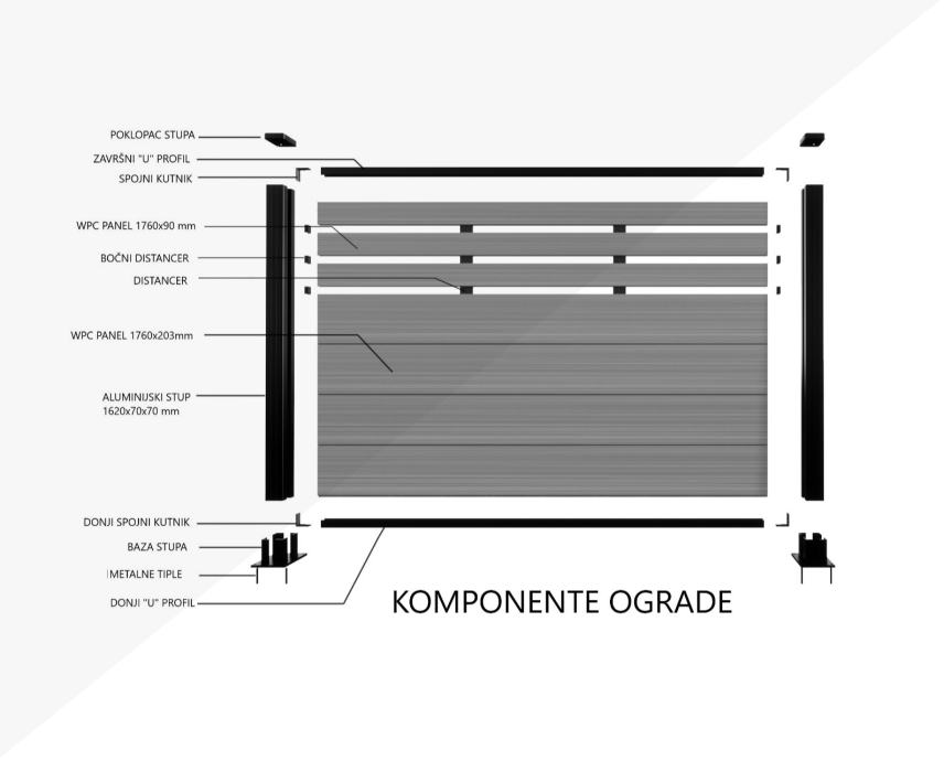 Ograda dolazi sa svim potrebnim elementima za montažu: