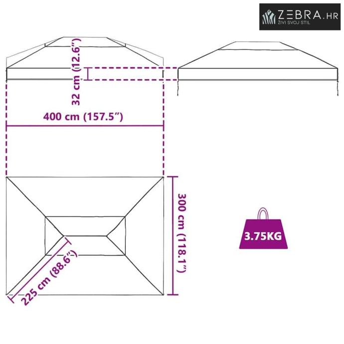 Sveukupne dimenzije: 400 x 300 x 32 cm (Š x Dub x V)