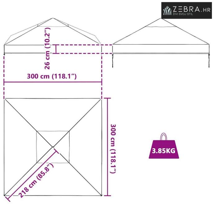 Sveukupne dimenzije: 300 x 300 x 26 cm (Š x Dub x V)