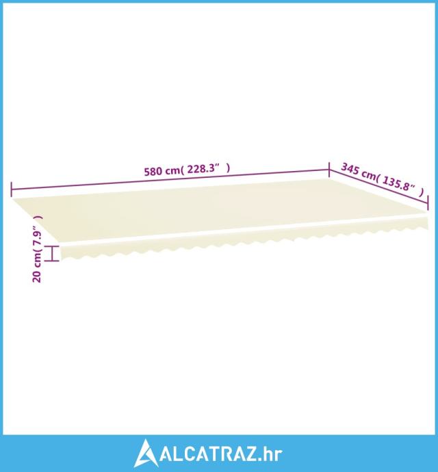 - Stvarna tvornička veličina platna: 580 x 345 cm (D x Š)
