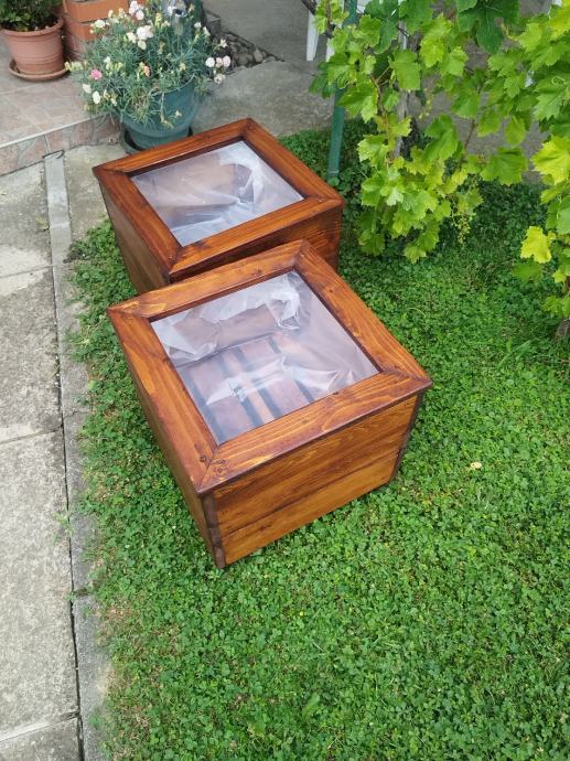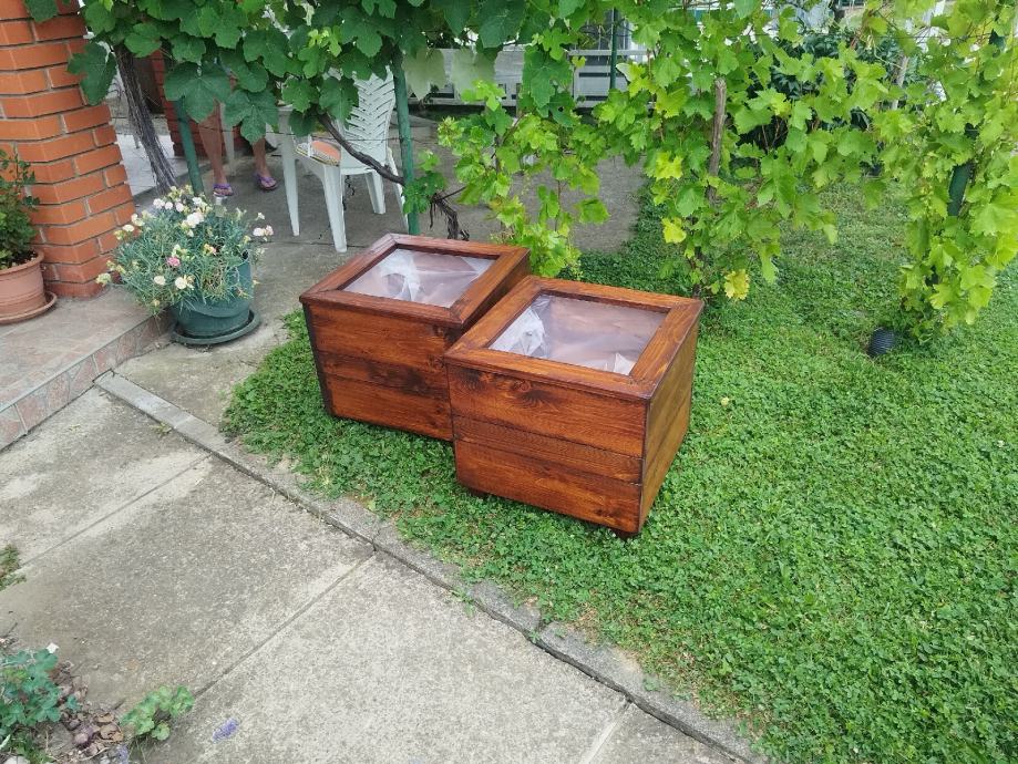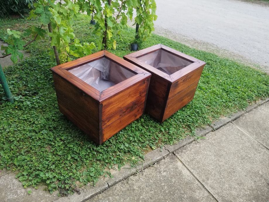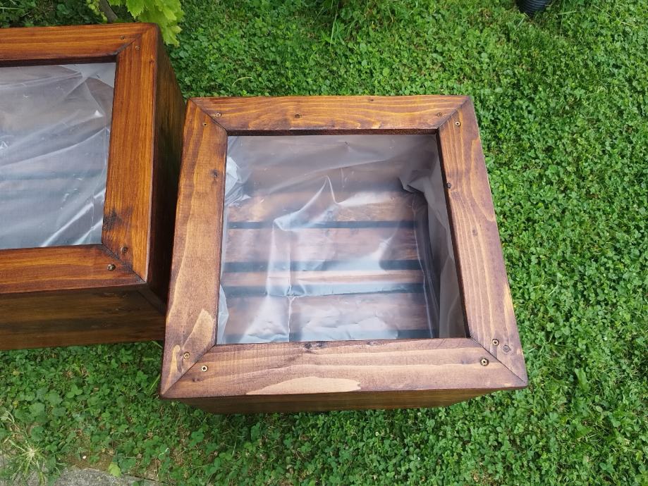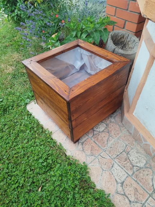 Drvena žardinjera obložena vrtlarskom folijom