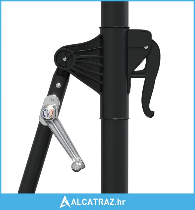 Napravljen od poliestera, koji štiti od UV zračenja i ne blijedi, pokrov suncobrana pruža vam najbolju moguću zaštitu od sunca i lako se čisti. Ekskluzivni dizajn ovog suncobrana omogućuje vam da ga nagnete kako biste blokirali sunce dok se spušta prema obzoru. Snažni metalni stup, s 8 izdržljivih rebara, čini zidni suncobran vrlo stabilnim i dugotrajnim. Ovaj vrtni suncobran može se lako otvoriti i zatvoriti zahvaljujući mehanizmu s ručicom. Ugrađenih 28 LED svjetala stvara ugodan i romantičan ambijent noću.