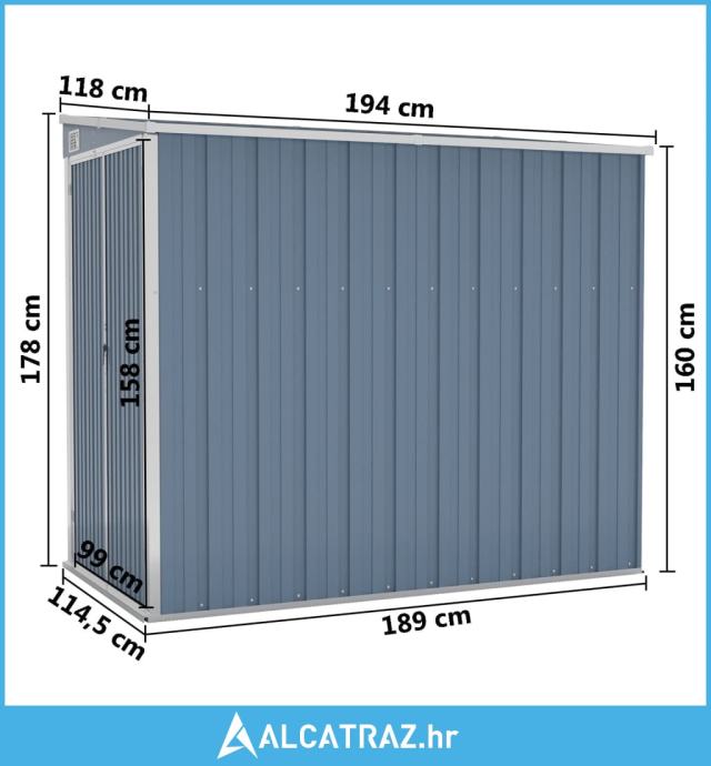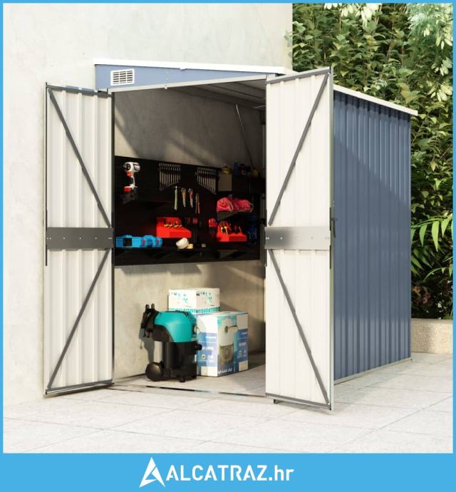 Zidno vrtno spremište sivo 118 x 194 x 178 cm pocinčani čelik - NOVO