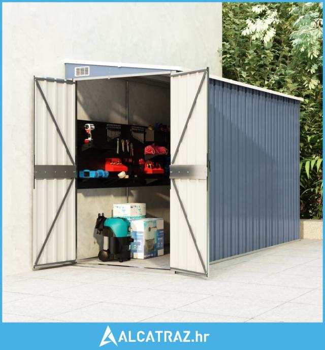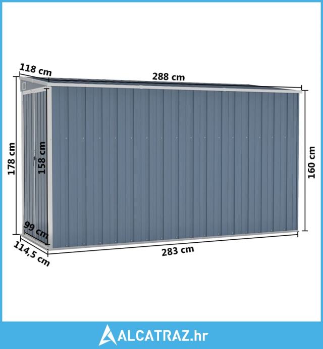 Zidno vrtno spremište sivo 118x288x178 cm pocinčani čelik - NOVO