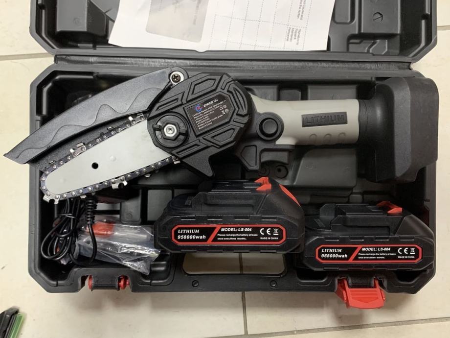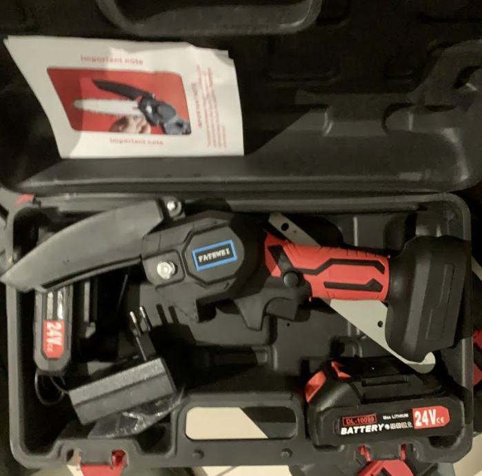 ➡️ U pakiranju dolaze kofer, motorna pila, 1 lanac, punjač, zaštita za oštri dio te 2 litijske baterije