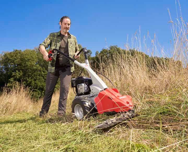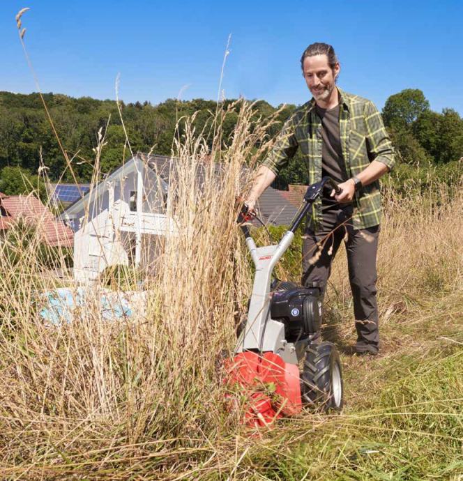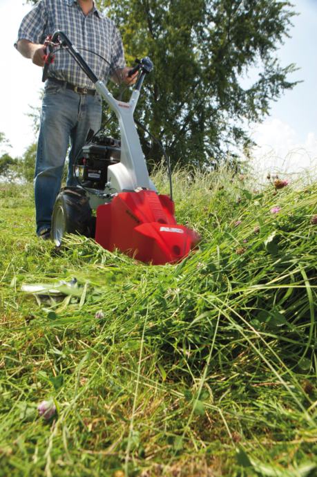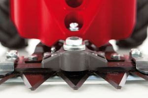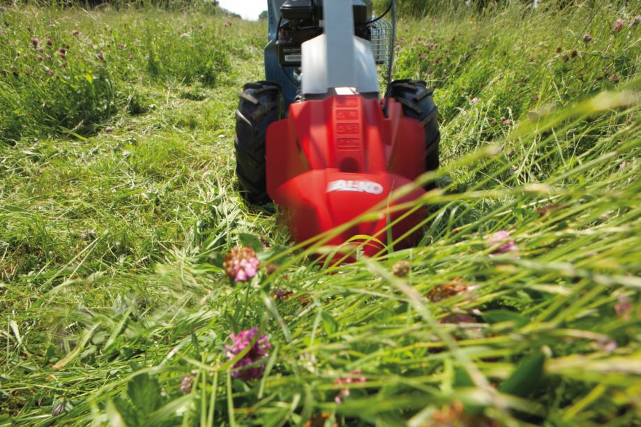 Pokretni deflektor trave i kraći razmak između kotača i nosača pri tome značajno poboljšavaju spremanje trave, obloženi zahvatnik na mehanizmu za košnju sa specijalno kaljenim ESM nožem i visinski podesivim donjim dijelom brinu se za dugovječan rad.