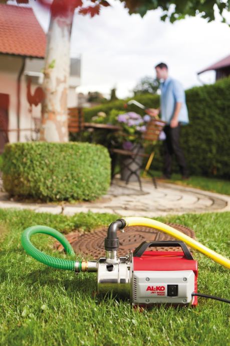 AL-KO vrtna pumpa Jet 3000 Inox Classic klasičnog izgleda u sivoj, crvenoj i srebrnoj boji izvrsno se može koristiti u vrlo različitim područjima primjene. Osobito je prikladna za snažno navodnjavanje dvorišta i vrta iz bunara, cisterne ili bačve za kišnicu. Maksimalna visina samousisavanja iznosi dobrih 8 m pri dostavnoj visini od najviše 35 m. Uz malu težinu od 6,3 kg jednostavno pokretanje osigurava vrlo lako rukovanje. Pumpa ima usisni priključak za tlačno crijevo od 1". AL-KO pumpa za vodu Jet 3000 Inox Classic pruža dobar omjer cijene i kvalitete za mobilno navodnjavanje. Uz nazivnu snagu od 650 W i maksimalan protok od 3.100 l/h vrlo je prikladna za upotrebu u kući i vrtu.