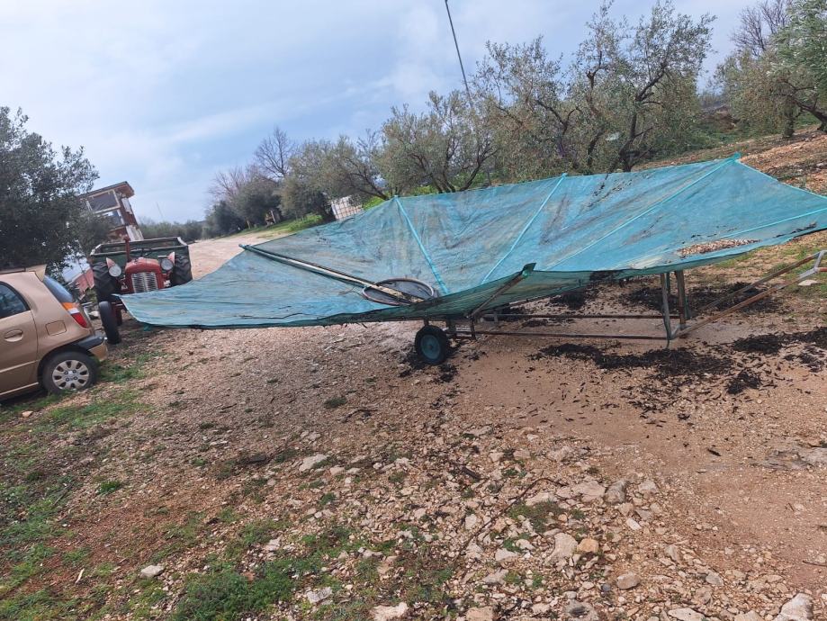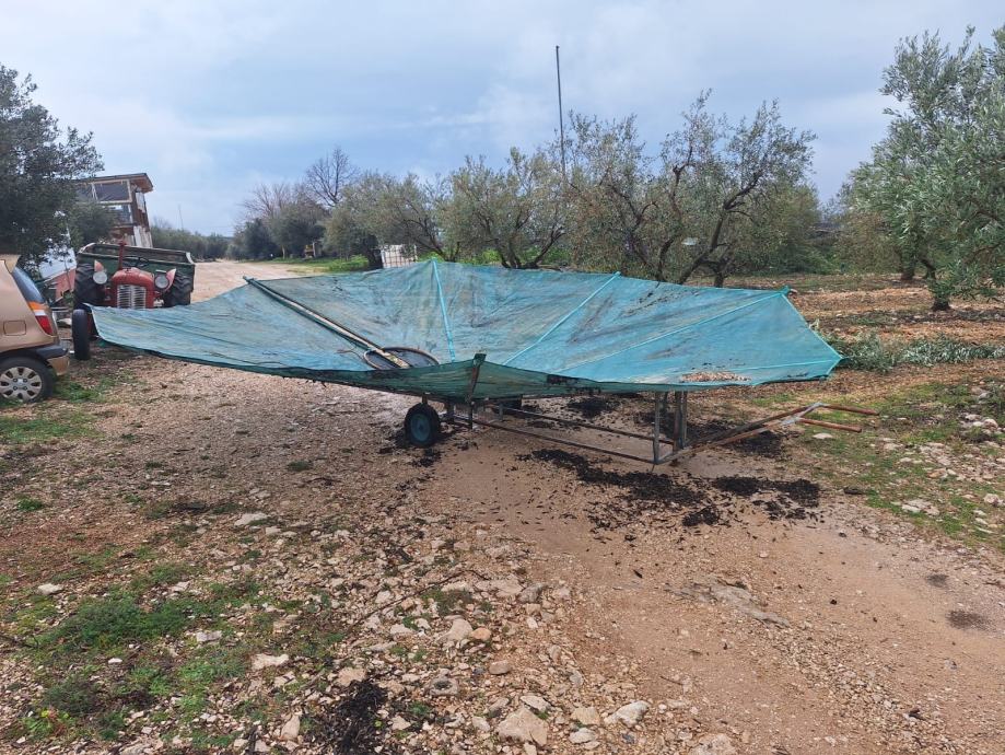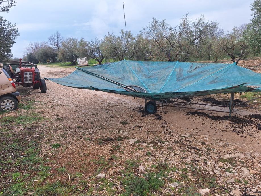 Beračica kao obrnuti kišobran sakuplja masline u sanduk na sredini. Ne trese. Trešnja je ručna.