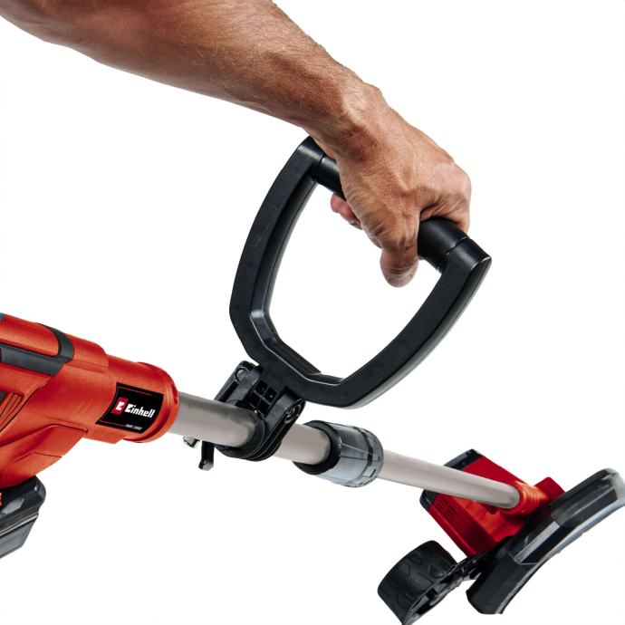 Einhell akumulatorski trimer za rubove travnjaka GE-LE 18/190 Li-Solo pripada pametnoj obitelji Power X-Change: snažne litij-ionske baterije mogu se kombinirati s neograničenom fleksibilnošću unutar akumulatorskog sistema. Podešavanje dubine u 3 stupnja osigurava precizne rezultate od 36,5 mm do 45 mm. Nož koji reže s obje strane daje savršene i točne rubne rezove, dok valjci sprijeda i straga omogućuju precizno odvijanje rada. Zaštitni mehanizam za korištenje integriran je u zaštitnu kapicu noža. Meki rukohvat jamči optimalno rukovanje i ergonomiju. Osim toga, podesiva dodatna ručka osigurava precizno i ??sigurno vođenje aku trimera za rubove travnjaka. Razdjelna osovina nudi jednostavan transport i skladištenje uz uštedu prostora. Za rad je potrebna 1x 18 V Power X-Change baterija. Isporuka ne uključuje bateriju i punjač; oni su dostupni zasebno. Solo model – isporučuje se bez akumulatora i punjača