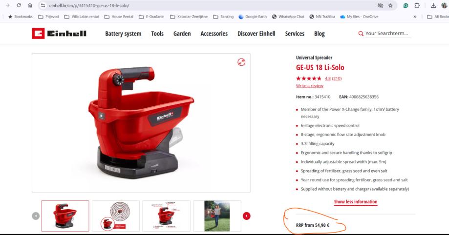Prodajem Einhell GE-US 18 Li-Solo sa baterijom - univerzalni raspršivač gnojiva, sjemena, soli i drugo.