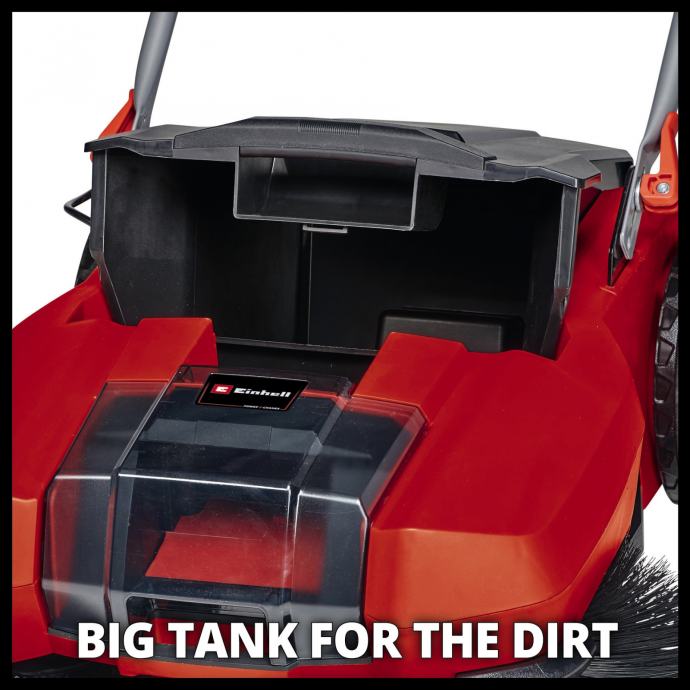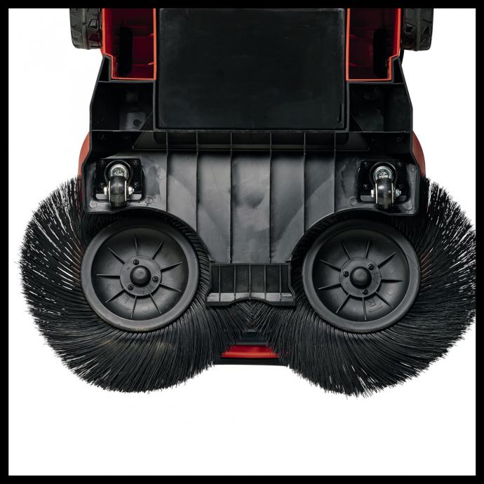 Einhell TE-SW 18/610 Li-Solo aku mehanički čistač član je fleksibilne PXC obitelji. Baterija i punjač dostupni su zasebno. Ovaj uređaj treba jednu punjivu bateriju od 18 V. Mehanički uređaj za čišćenje pomaže u radu kod čišćenja, omogućujući vam metenje bez naprezanja koristeći pogon i motor potpomognut baterijom, do samih rubova zahvaljujući četkici sa strane. Odličan je za čišćenje velikih površina do 1800 m² na sat zahvaljujući širini od 610 mm što olakšava održavanje velikih dvorišta urednima. Prekidač za uključivanje i isključivanje nalazi se na samoj ručici. Za lako rukovanje ima velike okretne valjke i ergonomski oblik. Zajedno s 20-litarskim spremnikom za prljavštinu koji se može odložiti.