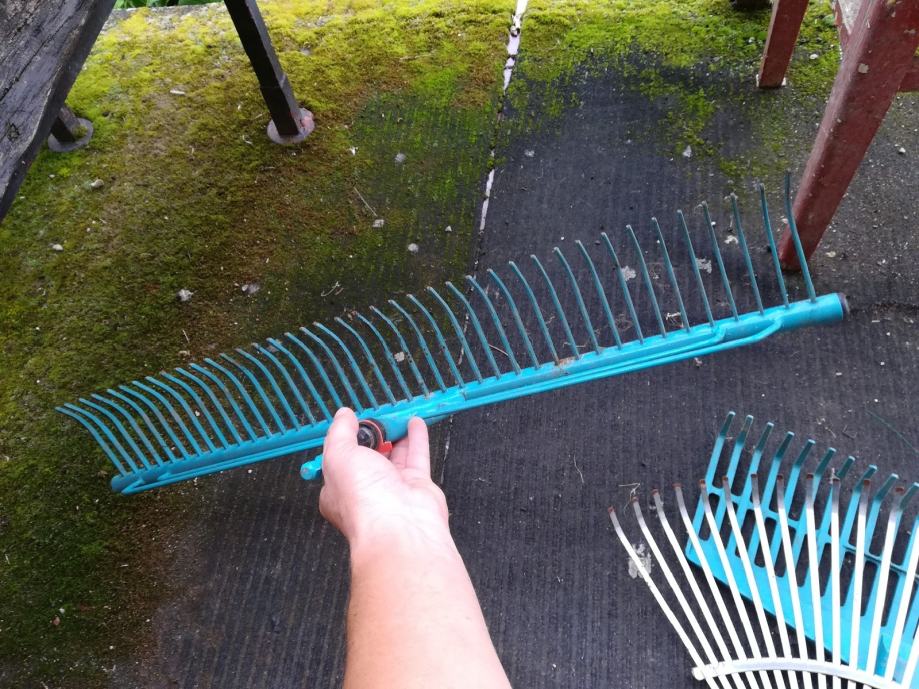 Gardena alati za vrt i okućnicu. Set se sastoji od drške dužine 180cm i alata koji se umetnu i pričvrste u dršku. Alati: grablje, češalj za mahovinu( onaj sa kotačima), lepezaste grablje plastične i dvoje metalnih od kojih su jedne potpuno nove. Sve je dobro očuvano i nema ikakvih oštećenja. Set košta 100eura. Cijena je fiksna. Na sms nemogu odgovoriti, najbolje bi bilo da me nazovete 099 687 5657 ili pošaljete poruku preko Njuškala.