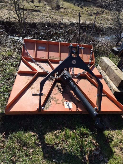 Prodajem malčer za traktor narandjaste boje, robusne metalne konstrukcije. Priključak je standardni trotočkasti, s kardanskim vratilom za spajanje na traktorov izlaz snage. Kućište je ojačano, s bočnim lancima koji služe kao zaštita od izbačenih predmeta. Radna širina je solidna, pogodna za održavanje travnatih površina, zapuštenog terena i rubnih pojaseva.