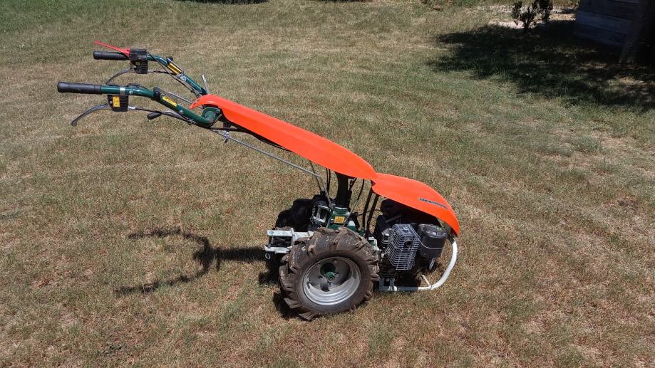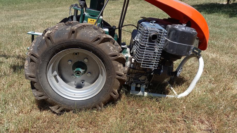 Motokultivator Greeny, grupa IM, nova serija, 350RS, 5,00*10˝, 8 KS, benzinac, 2009. godina. Od opreme ima rotacionu kopačicu PKM*CE, produžetak kopačice LPS, priključak za plug PPM, priključni plug razgrtač*PR-4 i kotač za prij. kopačice PKM. Kao nov, ima nekoliko radnih sati.