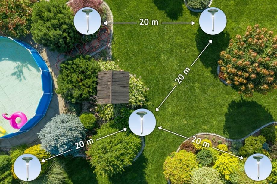 Uz pomoć solarnog napajanja i izgrađene baterije od 600mAh, uređaj također radi noću ili u oblačnom vremenu. Dvije jedinice zajedno pružaju zaštitu do 1000 m², omogućujući potpunu pokrivenost većih površina.