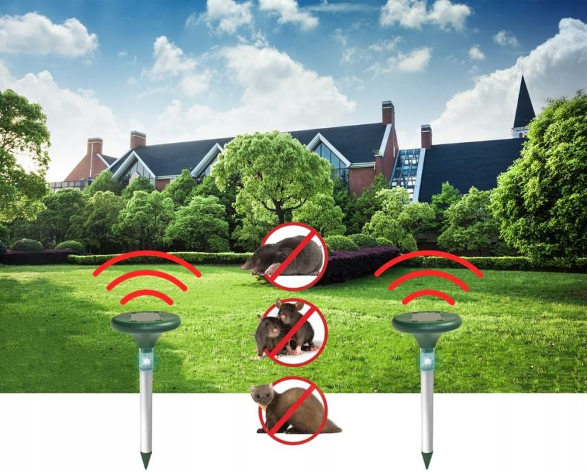 Postavite 2x solarne asove. 600mAh vodio je odbojnik volula miševa i krtice do 1000m2