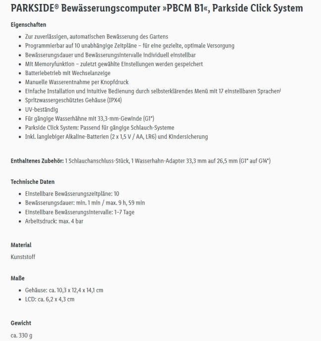 Programator Parkside PBCM B1 digitalni LCD Timer zalijevanje vrta balk