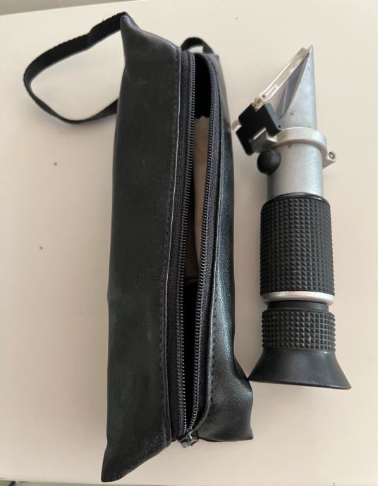 Prodajem refraktometar s ručnim mjerenjem. Uređaj dolazi u praktičnoj torbici za nošenje i zaštitu. Koristan alat za mjerenje koncentracije tekućina, posebno primjenjiv u vrtlarstvu i poljoprivredi za provjeru sadržaja šećera u voću ili sokovma. Jednostavan za korištenje - dovoljno je nanijeti nekoliko kapi tekućine na prizmu i očitati vrijednost kroz okular.