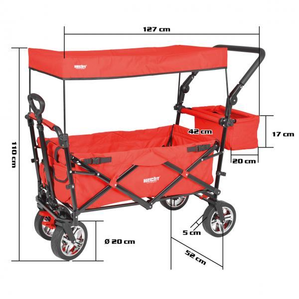 HECHT 50006 kolica za slobodno vrijeme savršeno su rješenje za roditelje i obitelji koji žele provoditi vrijeme vani sa svojom djecom. Zahvaljujući čvrstoj čeličnoj konstrukciji obloženoj prahom i izdržljivom poliesterskom premazu, kolica nisu samo čvrsta, već su i lagana i laka za nošenje. S nosivošću do 80 kg može primiti djecu i njihove igračke, a zahvaljujući dvama sigurnosnim pojasevima i prednjim kočnicama osigurava maksimalnu sigurnost tijekom prijevoza. Kolica su dizajnirana tako da se lako sastavljaju, što ih čini jednostavnim za spremanje i transport. Veliki kotači (5 / 20 cm) osiguravaju stabilnost i udobnu vožnju čak i po neravnom terenu. Ova su kolica odličan pomoćnik za obiteljska putovanja, šetnje parkom ili čak kupovinu.