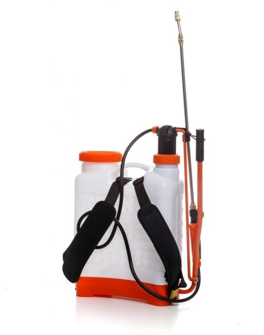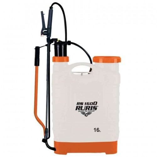 RURIS RS1600 leđna klipna prskalica idealna za raznolike zadatke u poljoprivredi i šumarstvu te u obrtničkom području dezinskecije i deratizacije i održavanju zelenih površina. Impresivna snaga prskanja uz dvije standardne mlaznice. Robusna metalna poluga pumpe, ergonomski je usavršena. Višestruko podesiva poluga pumpe za ergonomsko rukovanje, može se radi lakšeg spremanja uređaja staviti u vertikalni položaj. Široki dvostrani remen za nošenje. Radni spremnik od 16 litara s širokim otvorom za lakše utakanje tekućine. Ergonomski oblik spremnika od vrlo kvalitetne plastike otporne na UV zračenje. Visokokvalitetna cijev za prskanje. Pritisak od 2 do 4 bara. Težina 2,8Kg.