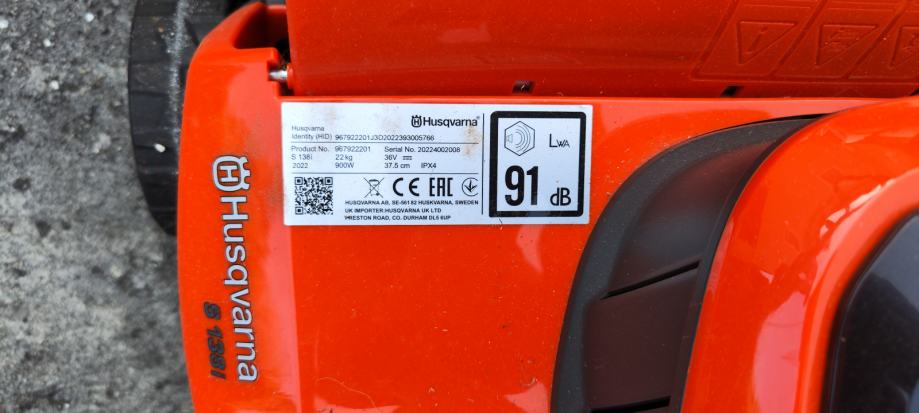 HUSQVARNA S138i BATERIJSKI PROZRAČIVAČ 38cm, S KOŠEM, 21.5kg