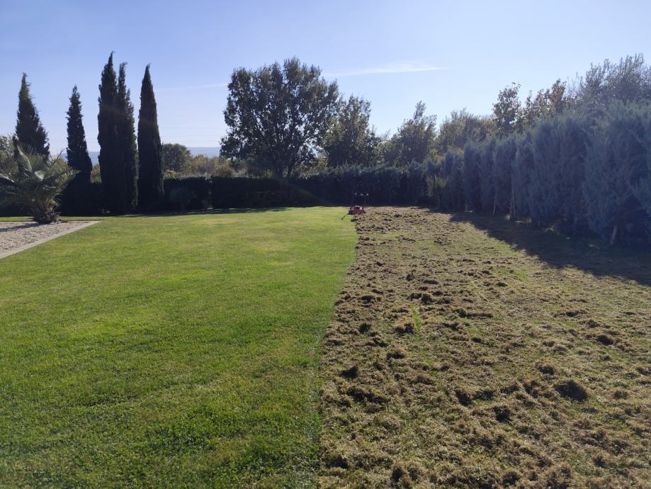 Prozračivač sam samo jednom koristila. Odlično diže suhu travu. Lako se sa njim radi. Ne treba snaga. Samopropelerni je kao kosilica. Prilažem slike travnjaka nakon rada sa prozračivačem kada sam ga jednom koristila.