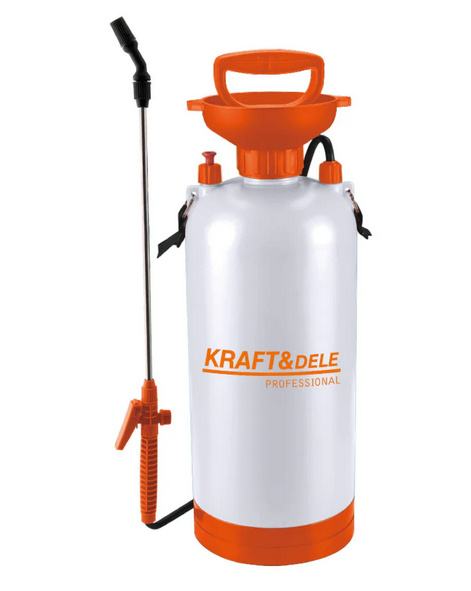 Tlačna prskalica, ručna, 8L | KRAFT-DELE jamči jednostavno i učinkovito korištenje, idealan je za primjenu insekticida, gnojiva i sredstava za čišćenje. Zahvaljujući robusnoj konstrukciji, udobnoj ručki i dugačkom produžetku za prskanje, omogućuje učinkovito i precizno raspršivanje tekućina na biljke, travnjake ili druge površine.