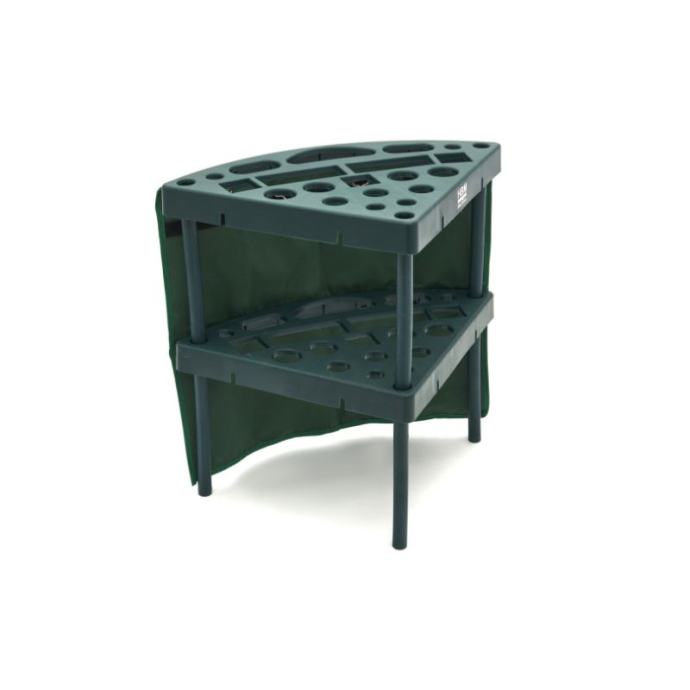Trokutasti stalak za vrtni alat uključuje platnenu torbu za pohranu
