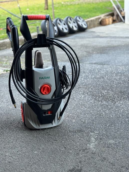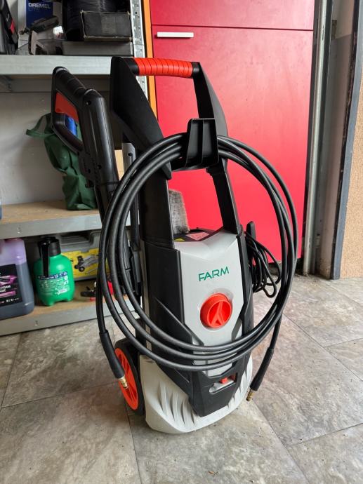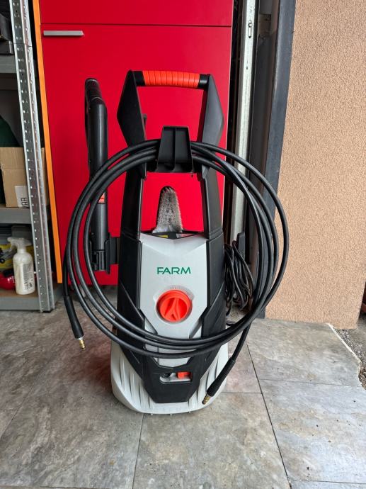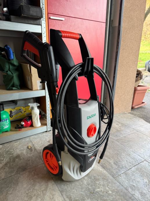 Prodajem visokotlačni perač marke FARM. Uređaj dolazi s pištoljem, crijevoм i nastavcima za pranje. Opremljen je kotačićima za lakše premještanje te ergonomskom ručkom za nošenje. Crno-sive boje s narančastim detaljima.