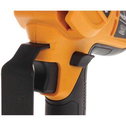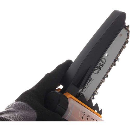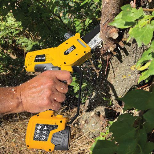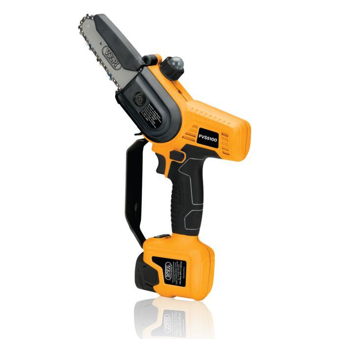 Opremljen je dvostrukim sigurnosnim prekidačem, lancem od 1/4″ sa zaštitnim poklopcem i šipkom od 5″, ergonomskom ručkom sa zaštitom za ruke. Spremnik za ulje je integriran i razina ulja uvijek je vidljiva izvana. Podmazivanje je ručno sustavom temeljnog premaza. Opremljen je s dvije punjive litijske bežične baterije od 14,4 V 2,5 Ah, iste kao one koje se isporučuju uz sve bežične škare u asortimanu Predator. Punjač baterija 1/4'' × 1,1 lančići od 32 karike Uključuje 2 baterije 14,4 V 2,5 Ah Ergonomska ručka Ručno podmazivanje lanca Maksimalni promjer rezanja 80 mm Bežični Duljina šipke 9cm - 5″ Punjiva litijska baterijaž Težina bez baterije 12.kg Obujam isporuke: Volpi PVS5100 2 baterije 14.4V 2.5Ah Proizvod dolazi u kartonskoj kutiji