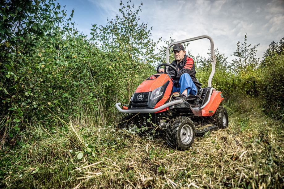 Za strme terene tudi do 35 °, hidrostatik, motor 23 KS BS ali 26 KS Kawasaki, teža cca 400 kg, širina košnje 92 cm ali 110cm ali 132 cm, nastavitev višine reza od 4 -135 mm.