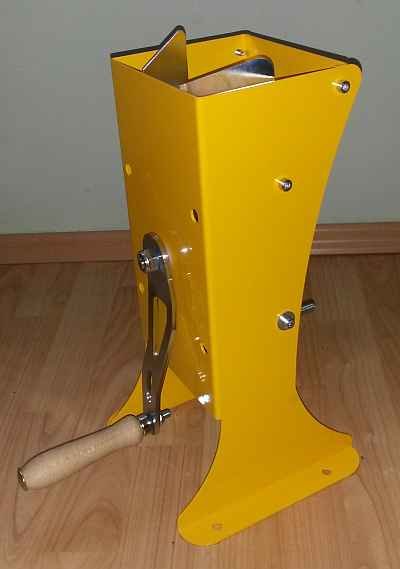 Mala i jednostavna krckalica oraha i lješnjaka, ručna, za kućnu upotrebu, kapaciteta do 15 kg/h oraha, pocinčana, plastificirana u crveno, lako podesiva za različite dimenzije plodova od 5 do 50 mm, kompaktnih dimenzija ( 380x220x200 mm, težine 6 kg), prodajem.