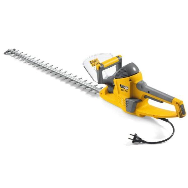 Ekološki prihvatljive električne škare za živicu s laserski preciznim dvostranim noževima, koji omogućuju minimalnu vibraciju pri radu. Podesiva prednja ručka i odlična uravnoteženost dodatno pridonose ergonomiji. Uređaj posjeduje mehaničku zaštita od preopterećenja.