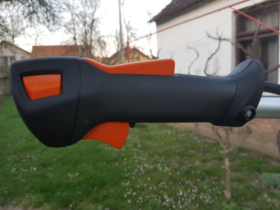 Uz njega dolazi: Jamstveni list (garancija je istekla), ključ, poluga za izmjenu glave, dodatci za stezanje noža, dupli remen za nošenje i nova originalna STIHL polu-automatska glava za silik (2,4mm).