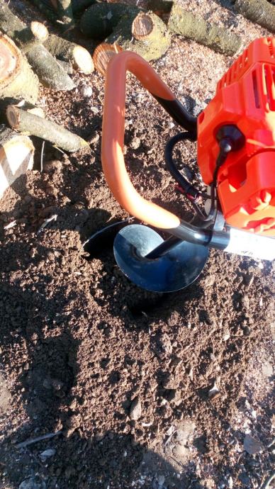 Prodajem jako motorno svrdlo za bušenje rupa u zemlji, za stupove, ograde. plantaze, vinograde i vočnjake, tj.sadnice i dr. Stroj je dvotaktni na mjesavinu ,sa CDI sistemom paljenja, moze s njume garantirano raditi jedan čovjek, snazan je i praktican za upotrebu . Lagan rad, rucke u obliku leptira ili osmice veliki pripomočak , rupe se brzo izbuše i zemlju spirala vuče van. Metalni starter, velika potezna rucka.Pali na prvi zub Uz stroj je svrdlo ○ 100 mm..deblja su i ojacana od hartmetala,sa debelom mrkva oštricom.Ekstra imam svrdlo °150 za plus 48 e. °200 mm.cijena plus cca 69 €. a fi. 25 je 95 €.Vrijednost velika samog stroja sa 1 svrdlom (°100 mm) je sada prodam za 2509 kn. Papiri, upute prilozeni, kao i alat sa priborom, Garancija i potrosni dijelovi osigurani, ali nisu potrebni, to traje i ne kvari se.Dim pusta sa strane a ne u oci, kao kod drugih masina iz prc.To je do sada NAJKVALITETNIJI stroj na EU trzistu,.Svaki dobar stroj se isplati kupiti jer se otplati , vrijedno ga je imati,i olakšati su rad,te po potrebi drugima vršiti usluge bušenja, te tako i zaraditi a ne imati brigu ,pali na prvi lagan potez / zub, i ne gasi se kao kod konkurencije.Proizvedeno u Sloveniji.Moguča dostava sa poštom.