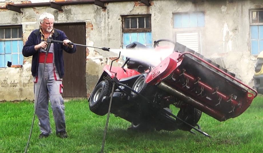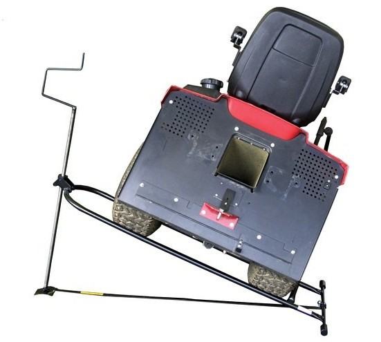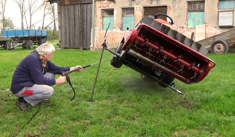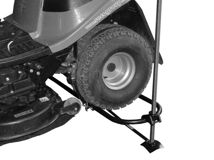 S to vrsto dizalice lahko dvignete vrtni traktor. Zelo močan vijak in matica varujeta dvigalko.Vijak je zaključen z ročajem, spodnji del pa je vležen na luknjo varnostne palice, ki je priključena na okvir dvigalke.