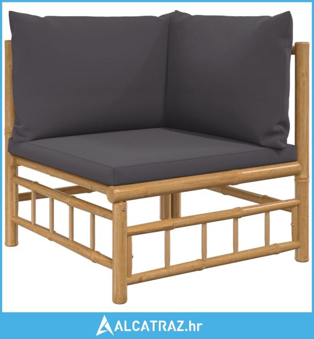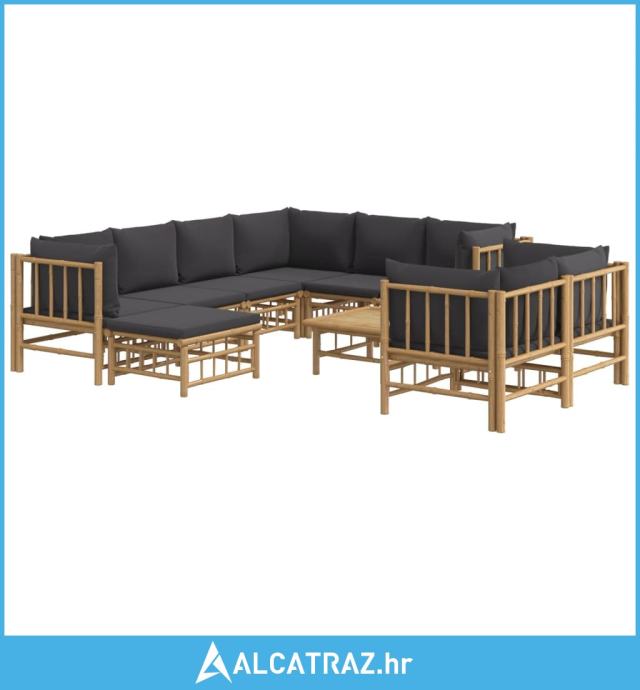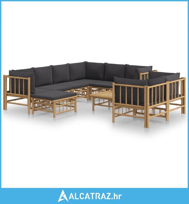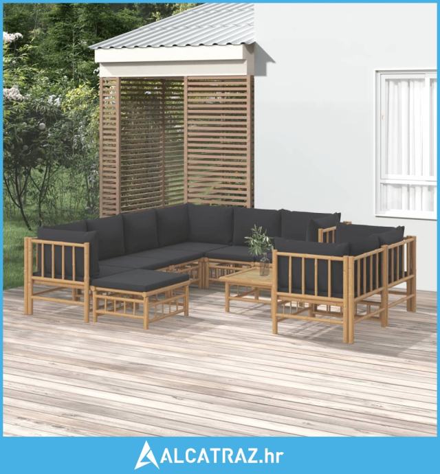 10-dijelna vrtna garnitura od bambusa s tamnosivim jastucima - NOVO