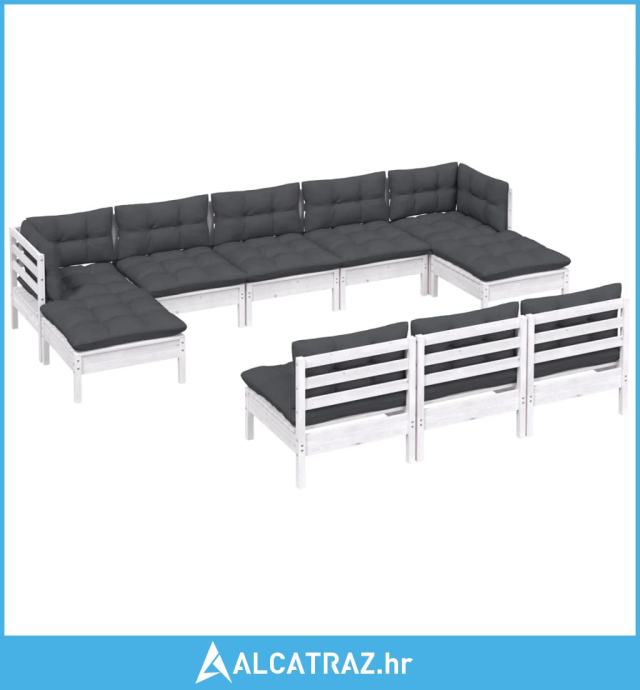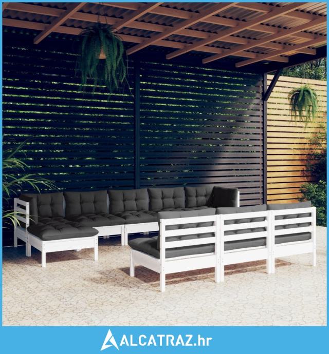 10-dijelna vrtna garnitura od borovine s jastucima bijela - NOVO