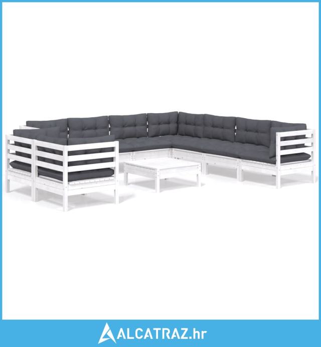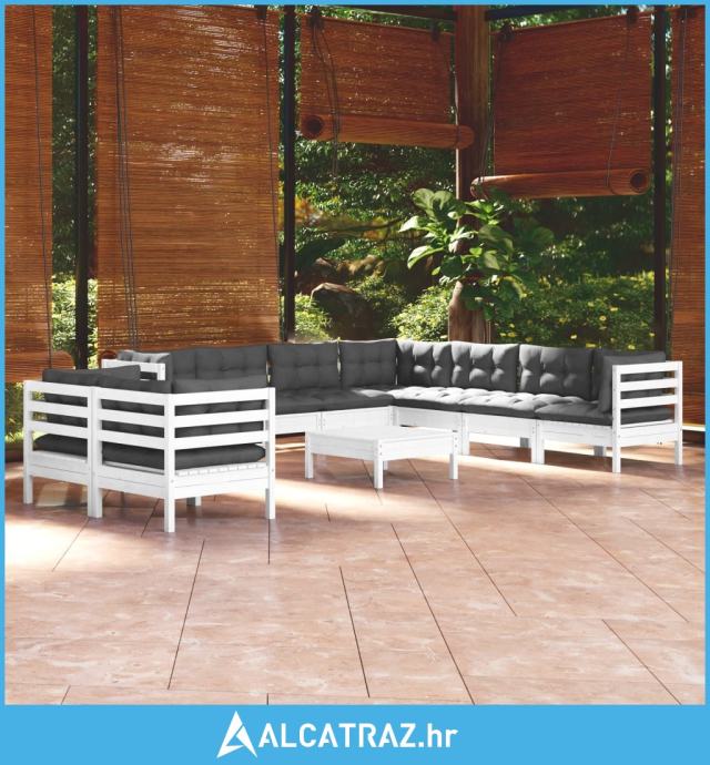 10-dijelna vrtna garnitura od borovine s jastucima bijela - NOVO