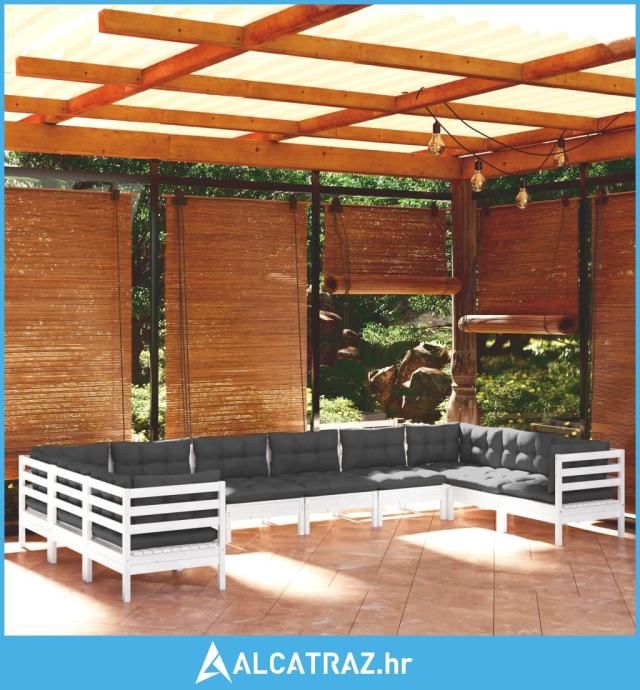 10-dijelna vrtna garnitura od borovine s jastucima bijela - NOVO